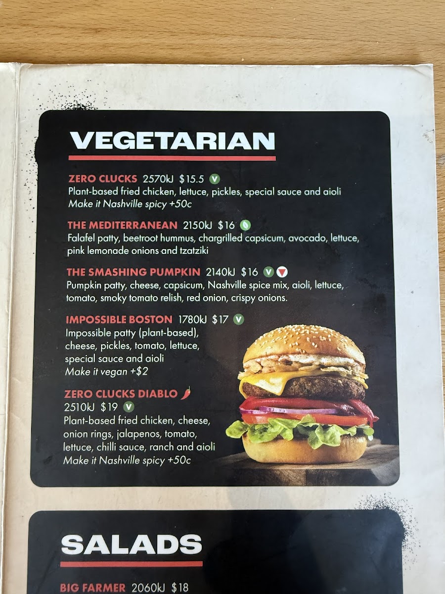 1 x smashed beef patty, 1 x slice of cheese, tomato, lettuce, red onion and special sauce.