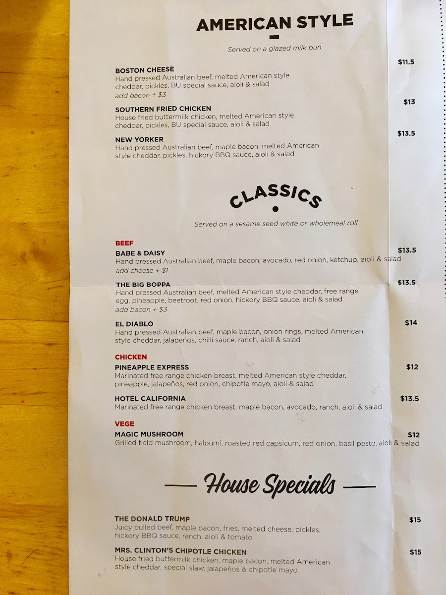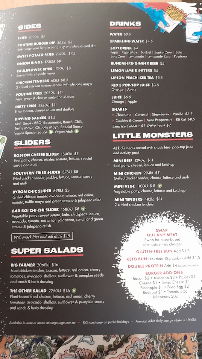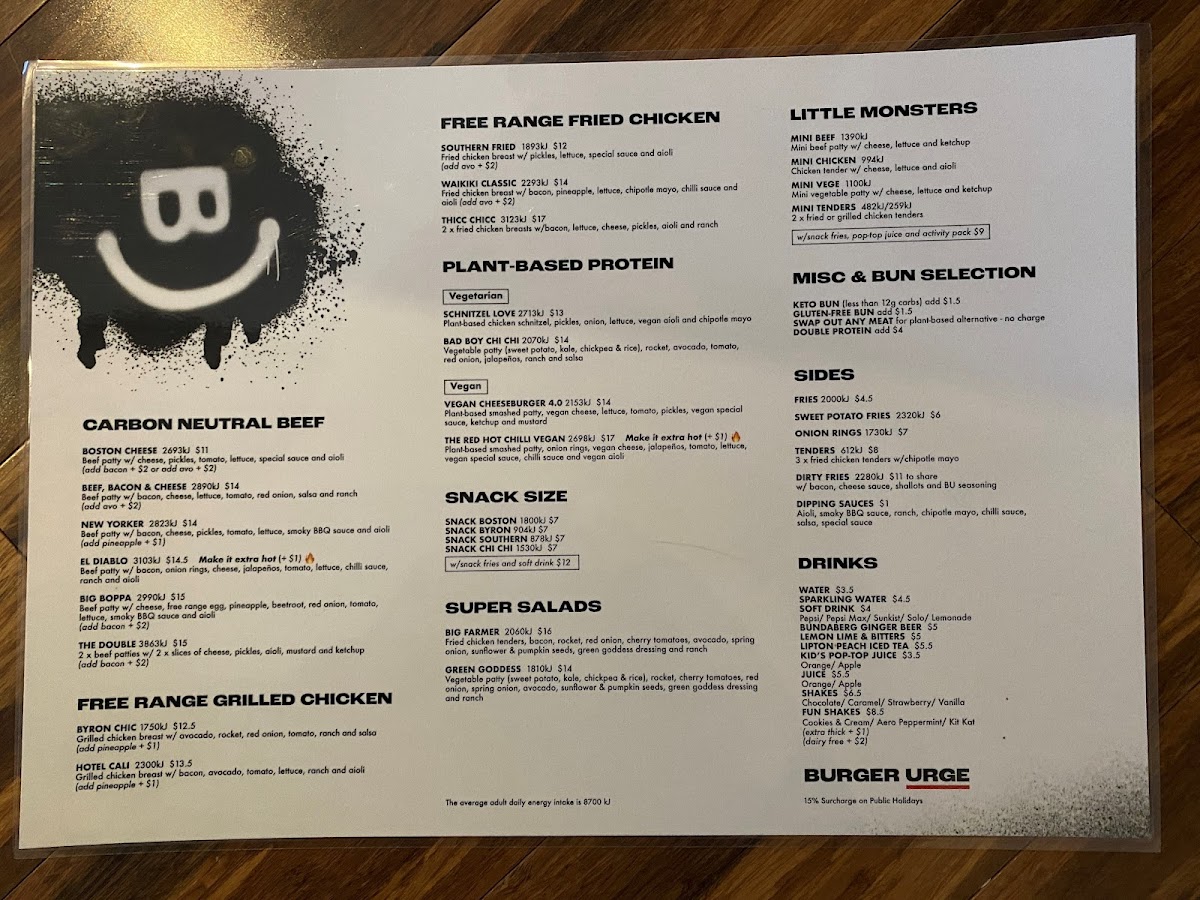 Burger Urge (DFO Brisbane Airport) Menu